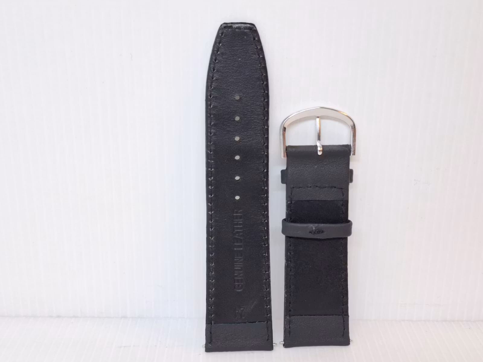 Du köper ett armband i svart färg. Armbanden är tillverkade i Hong Kong av äkta kalvskinn (läder). Det svarta armbandet har ett spänne i silver färg. Det medföljer två bandstift. Passar både dam och herr.