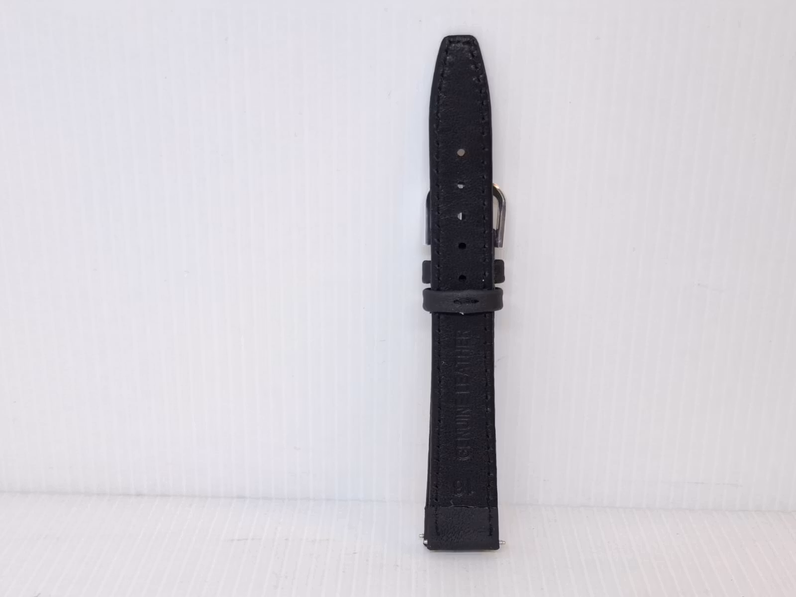 Du köper ett armband i svart färg. Armbanden är tillverkade i Hong Kong av kalvskinn (läder). Det svarta armbandet har ett spänne i silver färg. Det medföljer bandstift.