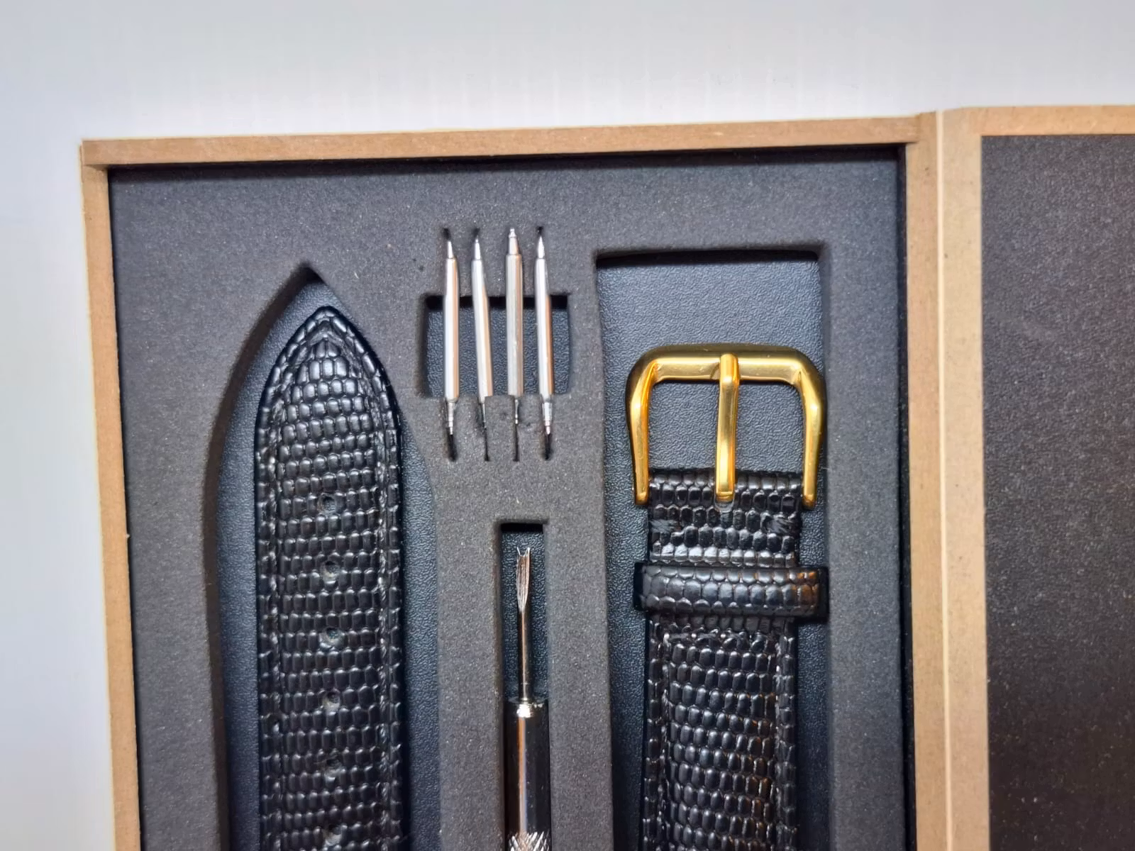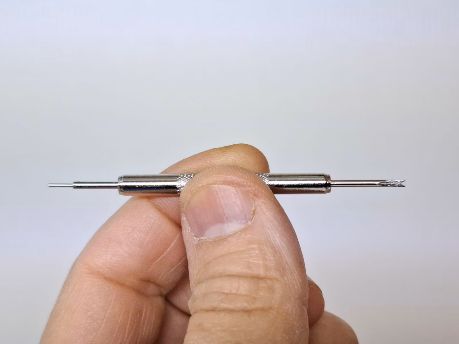2) Ett bandstiftsverktyg. Detta verktyg är praktisk att använda vid byte av klockarmband på klockor. Verktyget har en så kallad svanhals och som används för att enkelt komma åt stift utan att skada bandet eller klockan. Verktyget är tillverkad i metall.