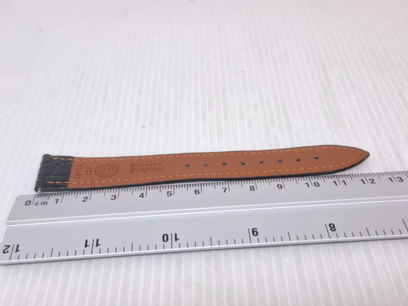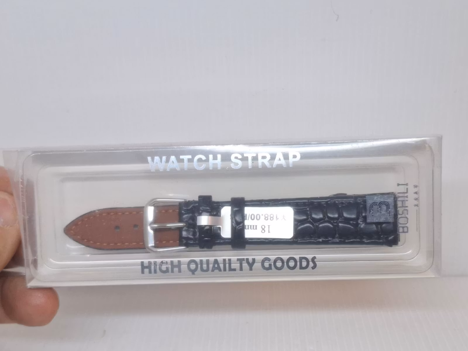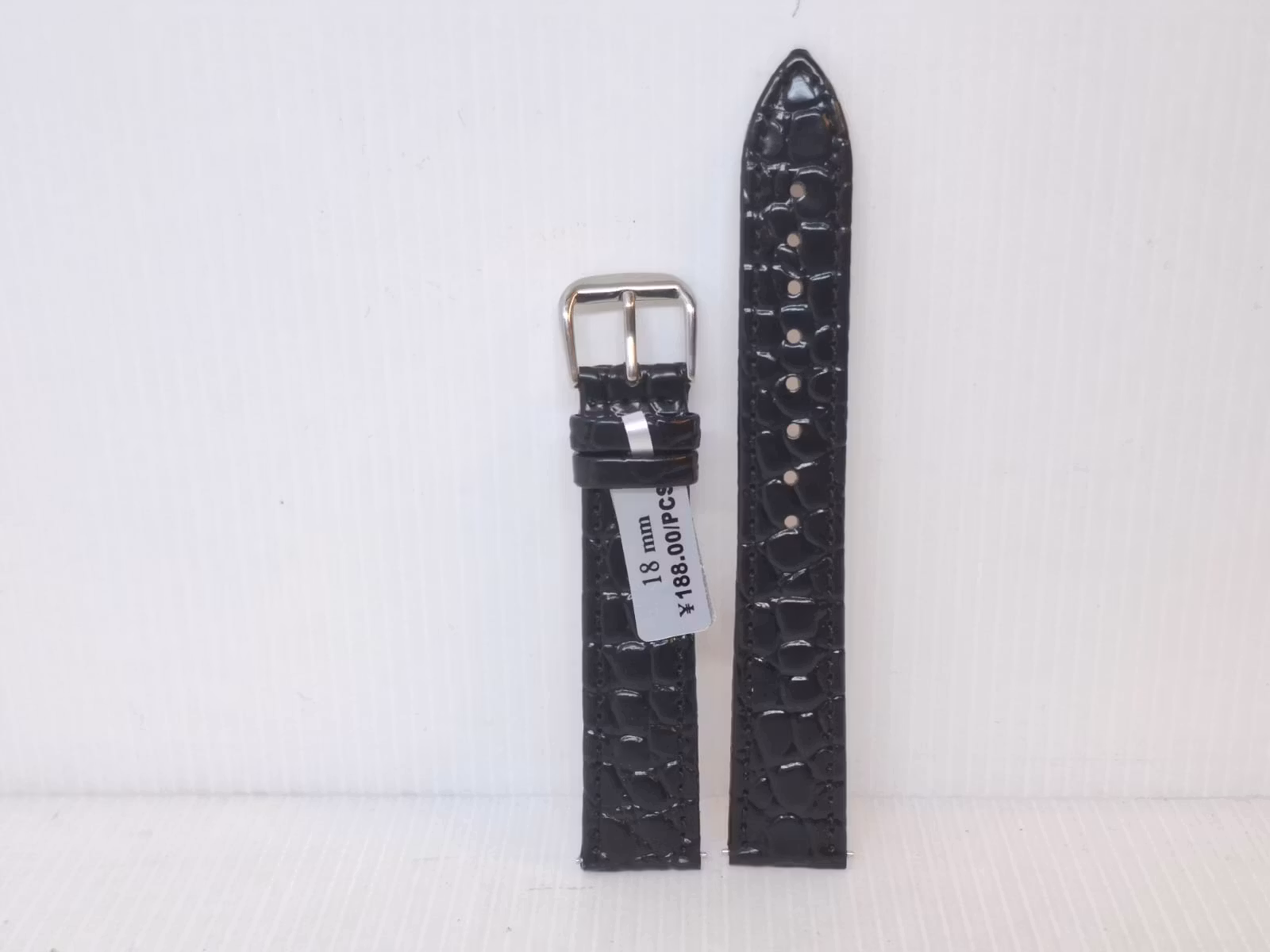 Du köper ett klockarmband som är gjord av äkta läder. Armbandet har ett mönster som påminner om mönster som krokodiler har (se bilderna). Armbandet kommer i svart färg och passar både dam och herr. Spännet är silverfärgat. Det ingår två bandstift (en i varje del av armbandet). Armbandet kommer i en förpackning.