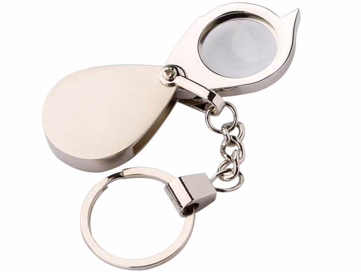 Du köper en lupp som kommer i en nyckelring. Luppen är praktisk och enkel att ha med vart man än går. Förstoringsstyrkan på luppen är gånger 10 (x 10). Luppen är helt tillverkad i metall.