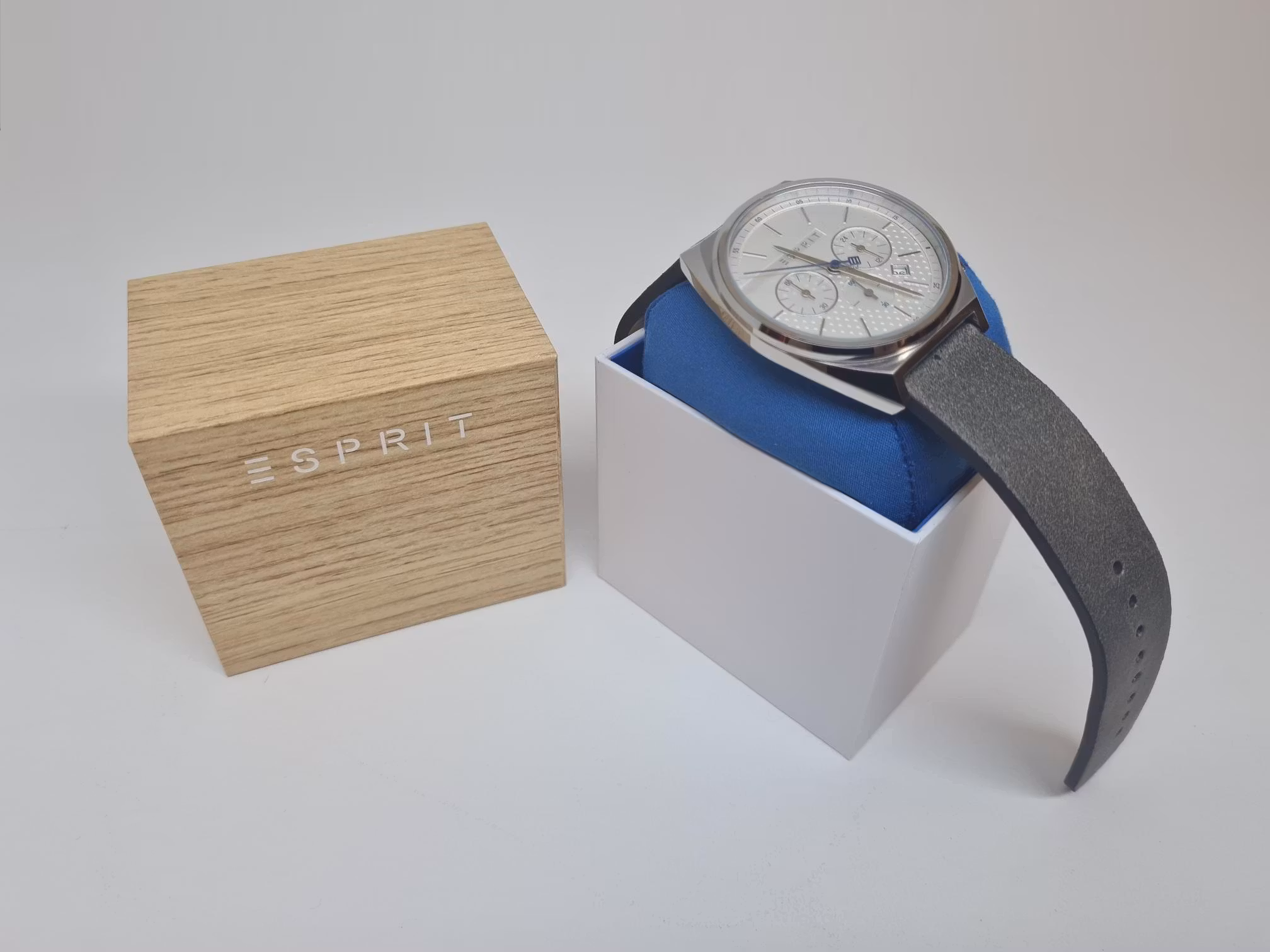Du köper en klocka av märket Esprit Slice Chrono. Klockan kommer i sin original box. Batteri medföljer. För herrar.