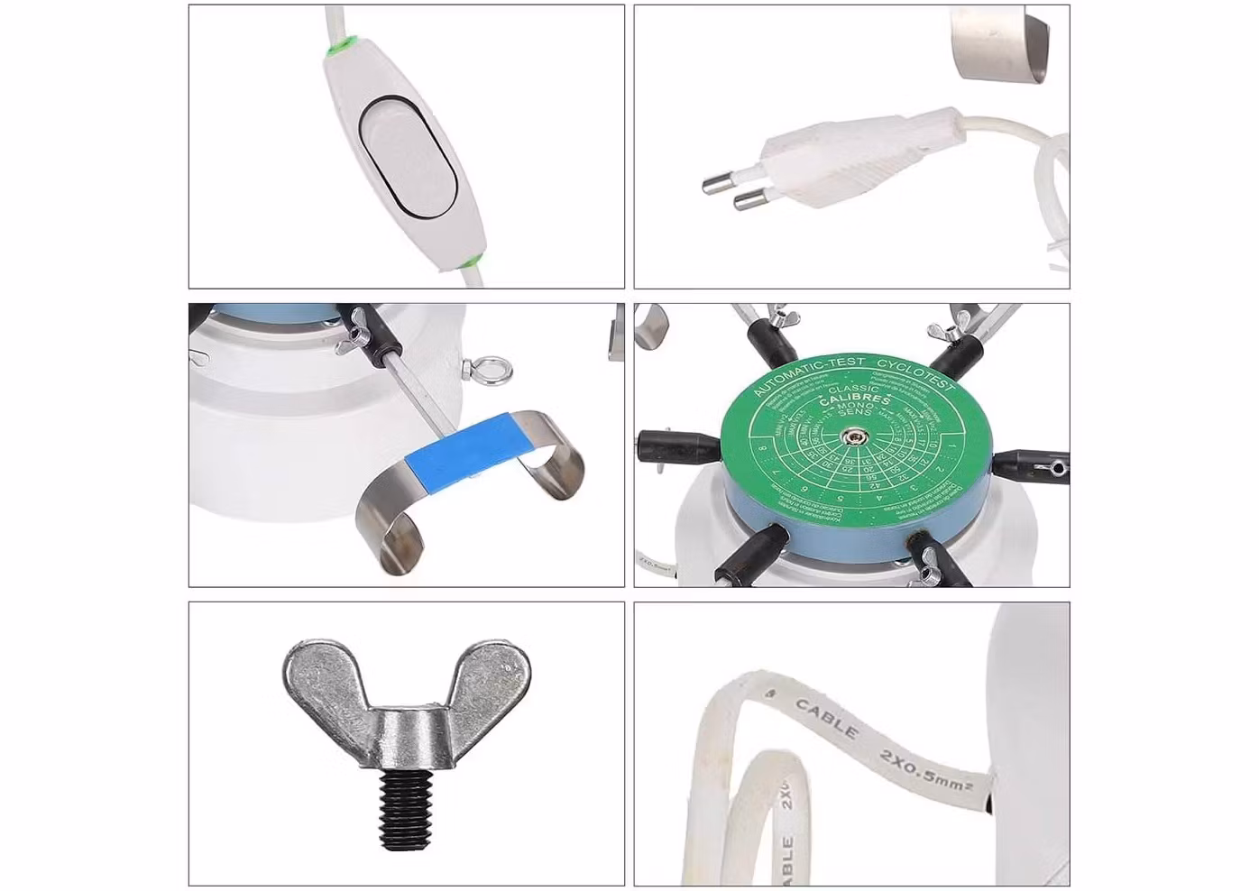 Klocklindaren är inte jordad och har ett europeiskt uttag (220 V). Den kommer i sin förpackning. Notera att klockorna på bilden är endast för visningssyfte och ingår inte i köpet.