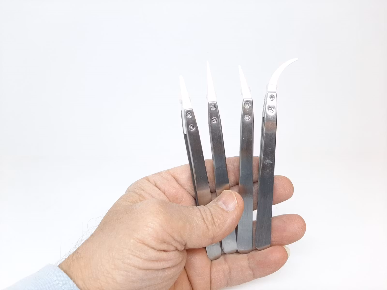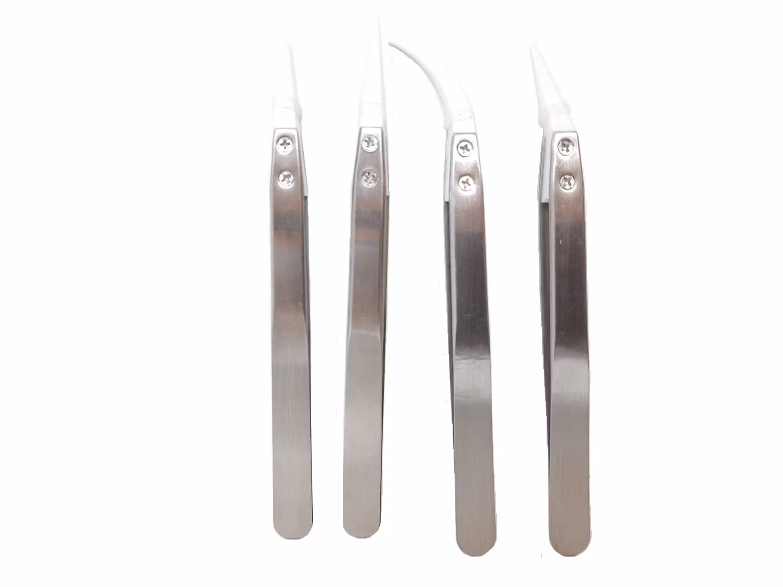 Du köper ett set som innehåller fyra stycken pincetter. De är gjorda av rostfritt stål och som har en ände av vit keramik. Dessa praktiska pincetter kan användas för flera ändamål som exempelvis reparation av klockor.