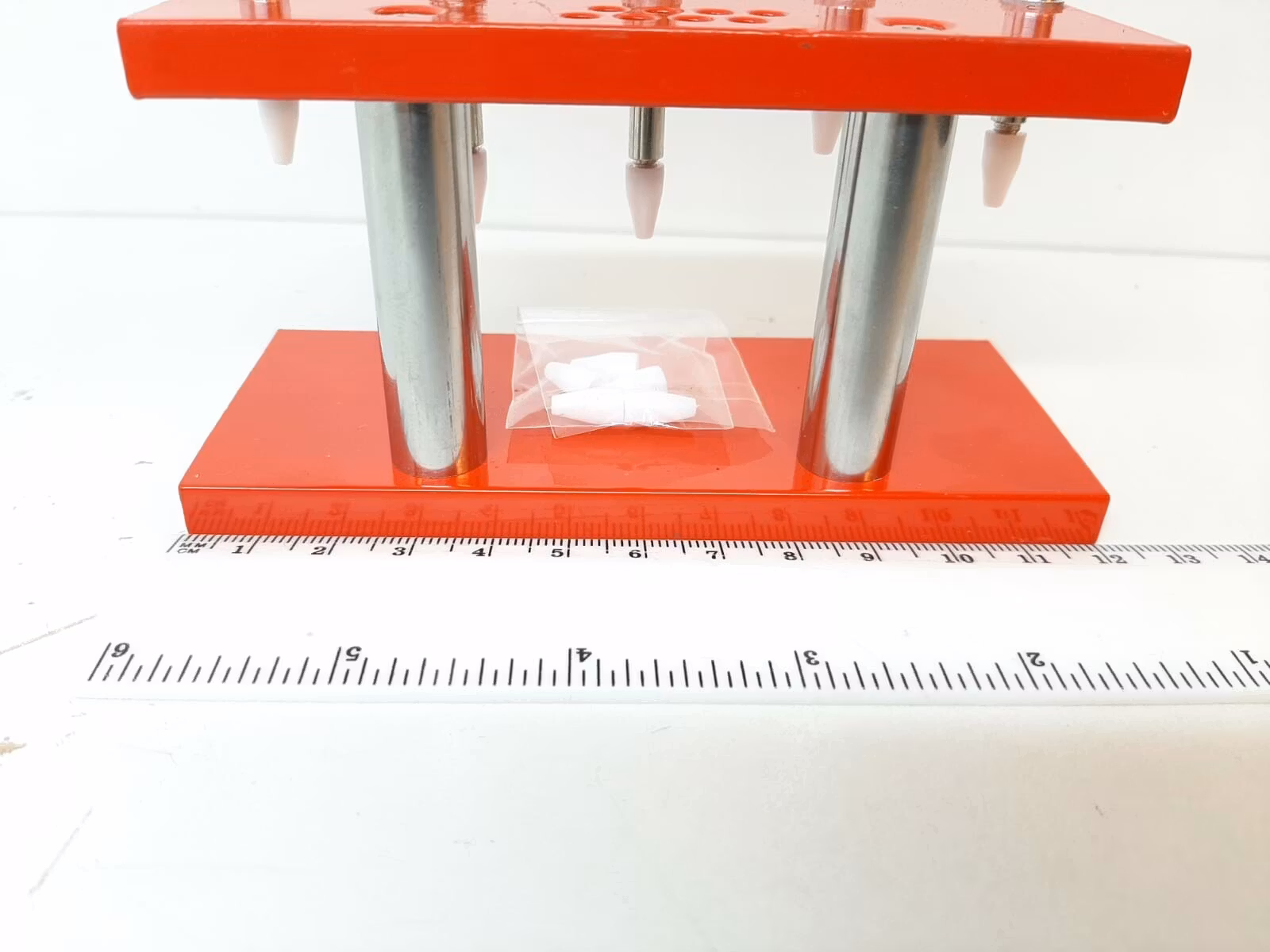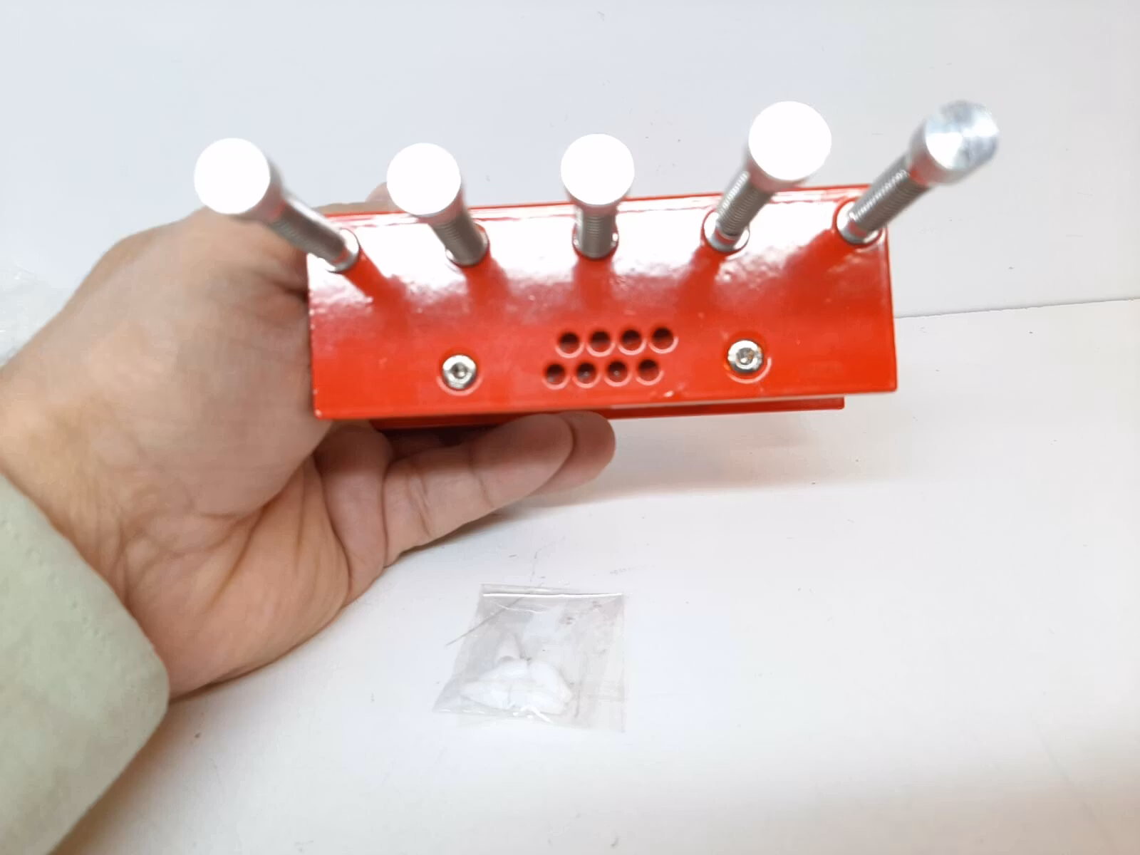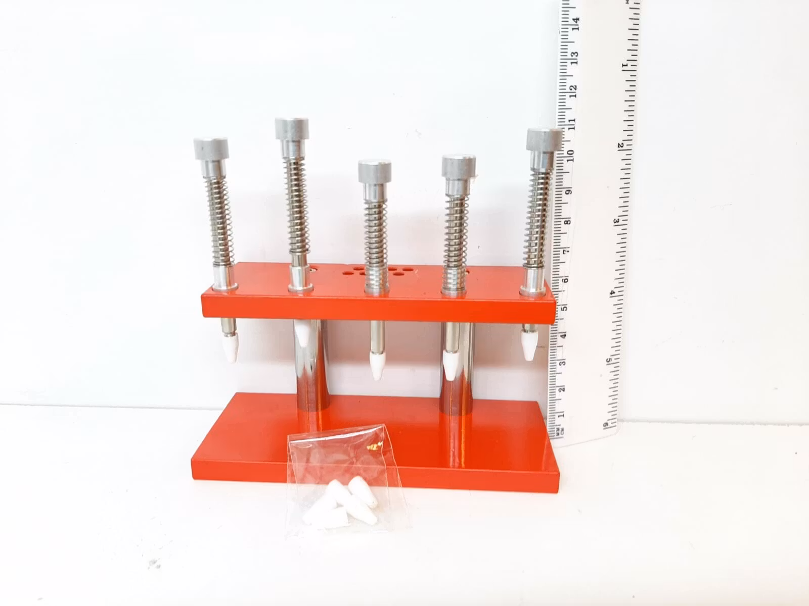 Du köper ett klockverktyg som har 5 vispressar. Dessa vispressar är praktiska verktyg för att säkert och försiktigt kunna pressa fast/tillbaka visarna. Klockan hålls fast på plats i mittkolven med hjälp av vis press och som hjälper till att skydda och inte skada klockan. Materialet på vispressen är av rostfritt stål och toppen är av plast.