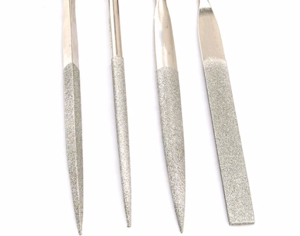 Du köper ett set innehållande 10 stycken nålfilar med diamantbeläggning. Varje nålfil har en unik form; Flack, flack/spets, rund, fyrkant, trekant, halvrund, kniv, fågeltunga, oval och barett. Varje nålfil är ca 18 cm lång.