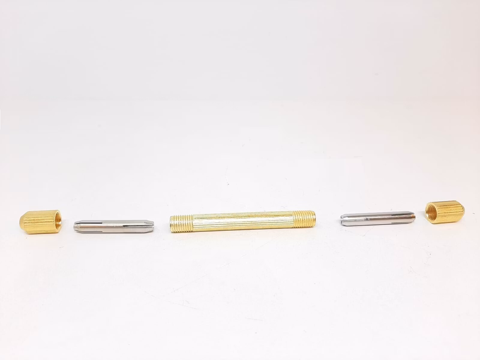 Du köper en Pin Vise / borr. Detta verktyg är praktisk att använda vid exempelvis reparation av klocka och urverk. Använd detta verktyg för att bland annat göra hål, pilla bort, trycka och annat. Verktyget har två små cylindrar som finns inne i själva verktyget. Varje cylinder har två storlekar ute på varje ände. Använd den ände där din nål passar och skruva sedan ihop verktyget med cylindern inne i verktyget. Nål ingår inte.