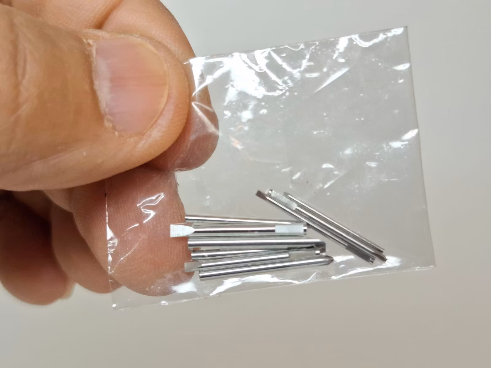 Mejslarna är gjorda av metall. Hållaren är gjord av plast.