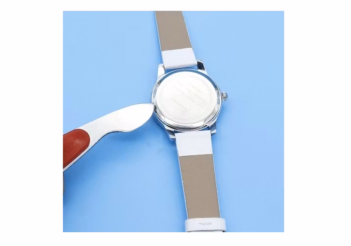 9) En Länkborttagare som kommer i blå färg. Placera klockan på borttagaren och använd nålen för att ta bort bandstiften från klockarmbandet.