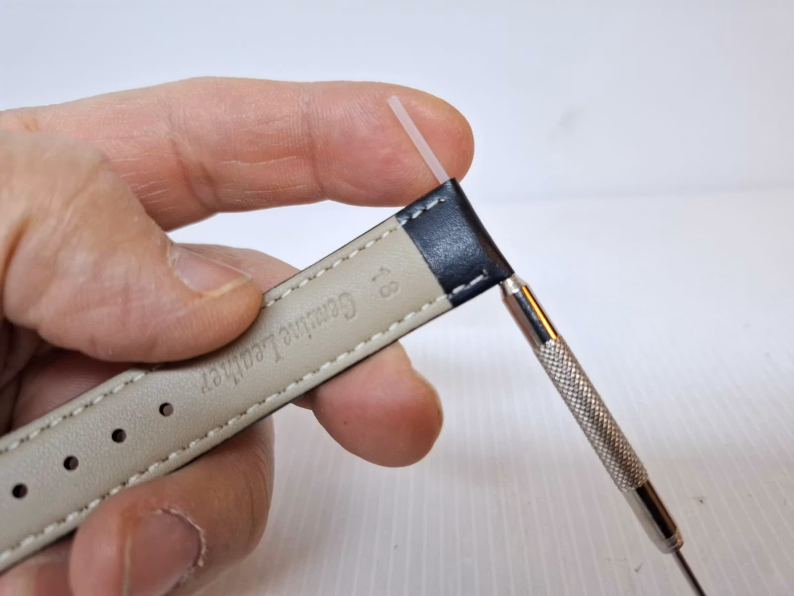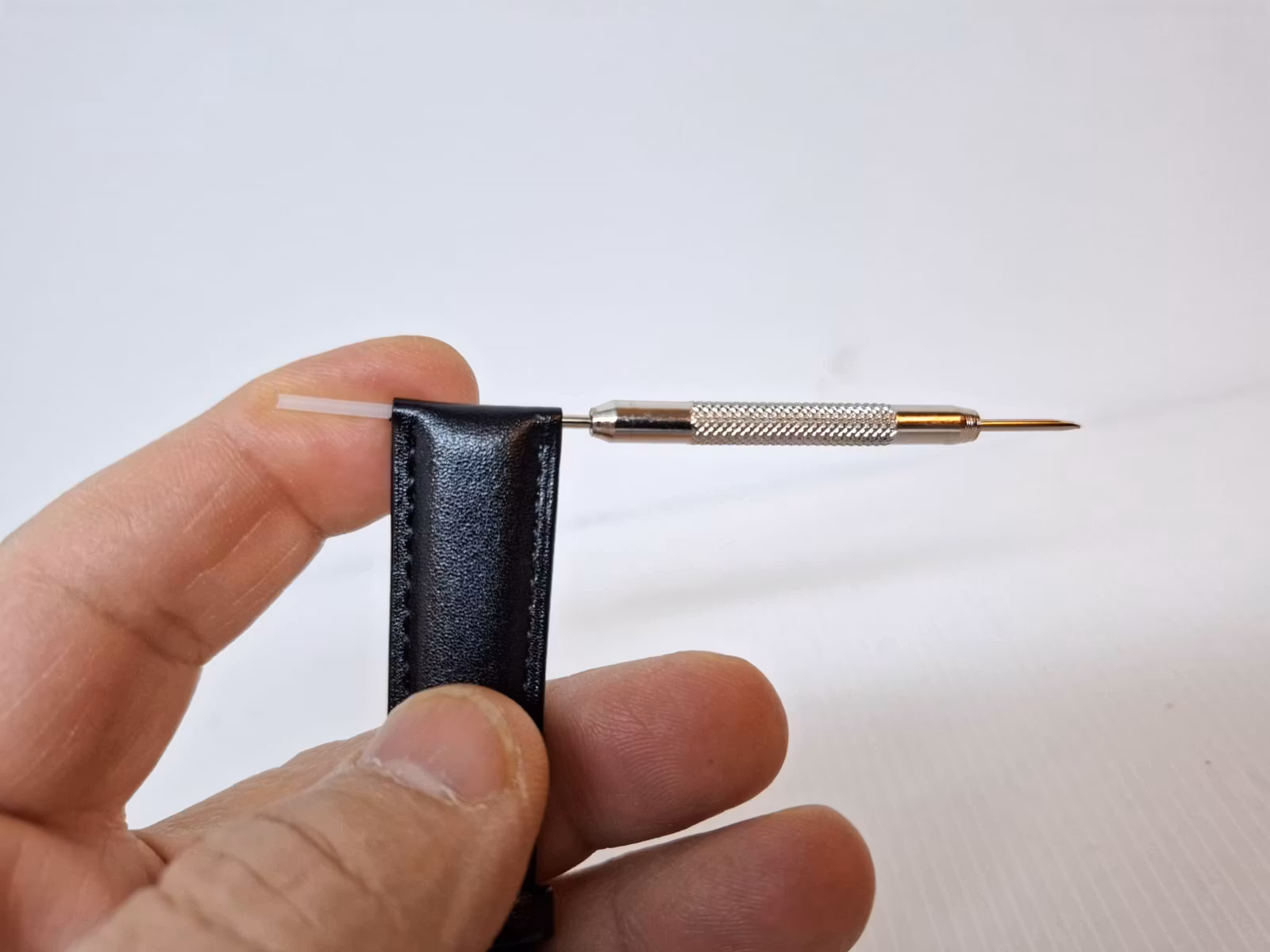 2) Ett bandstiftsverktyg. Detta verktyg är praktisk att använda vid byte av klockarmband på klockor. Verktyget har en så kallad svanhals och som används för att enkelt komma åt stift utan att skada bandet eller klockan. Verktyget är tillverkad i metall.