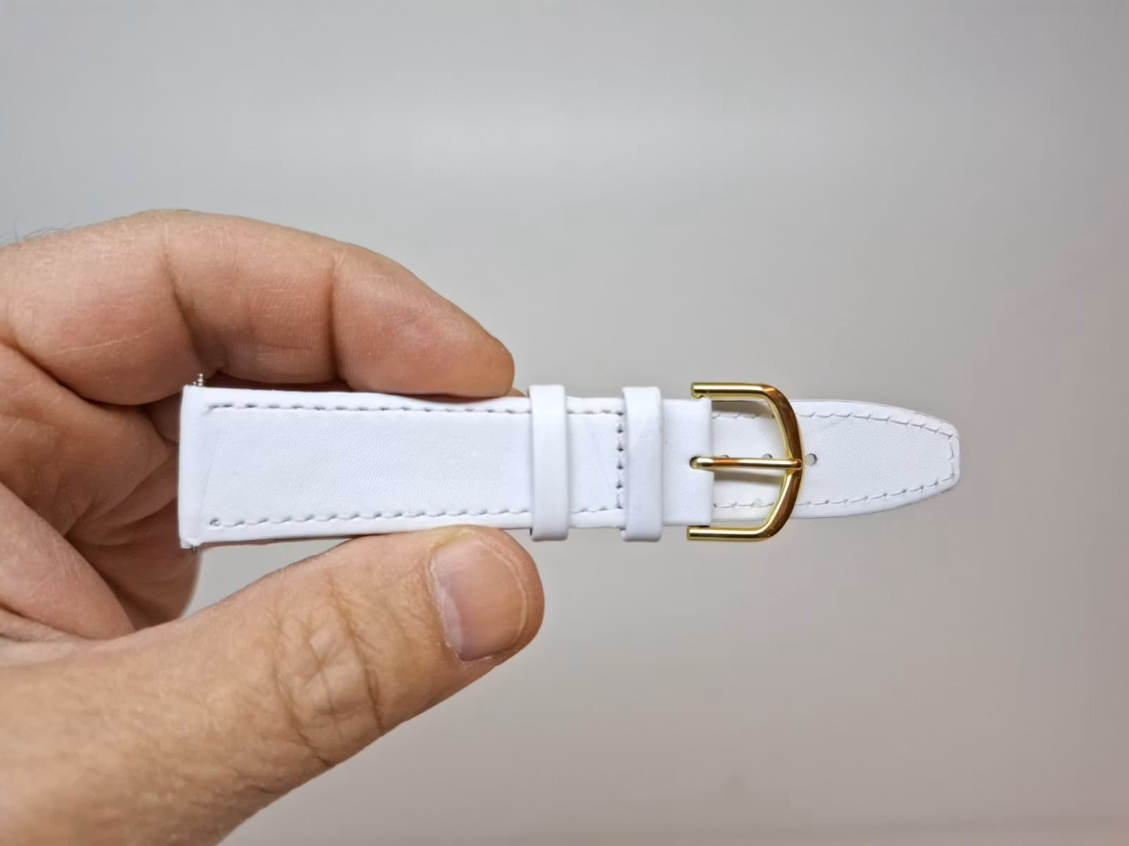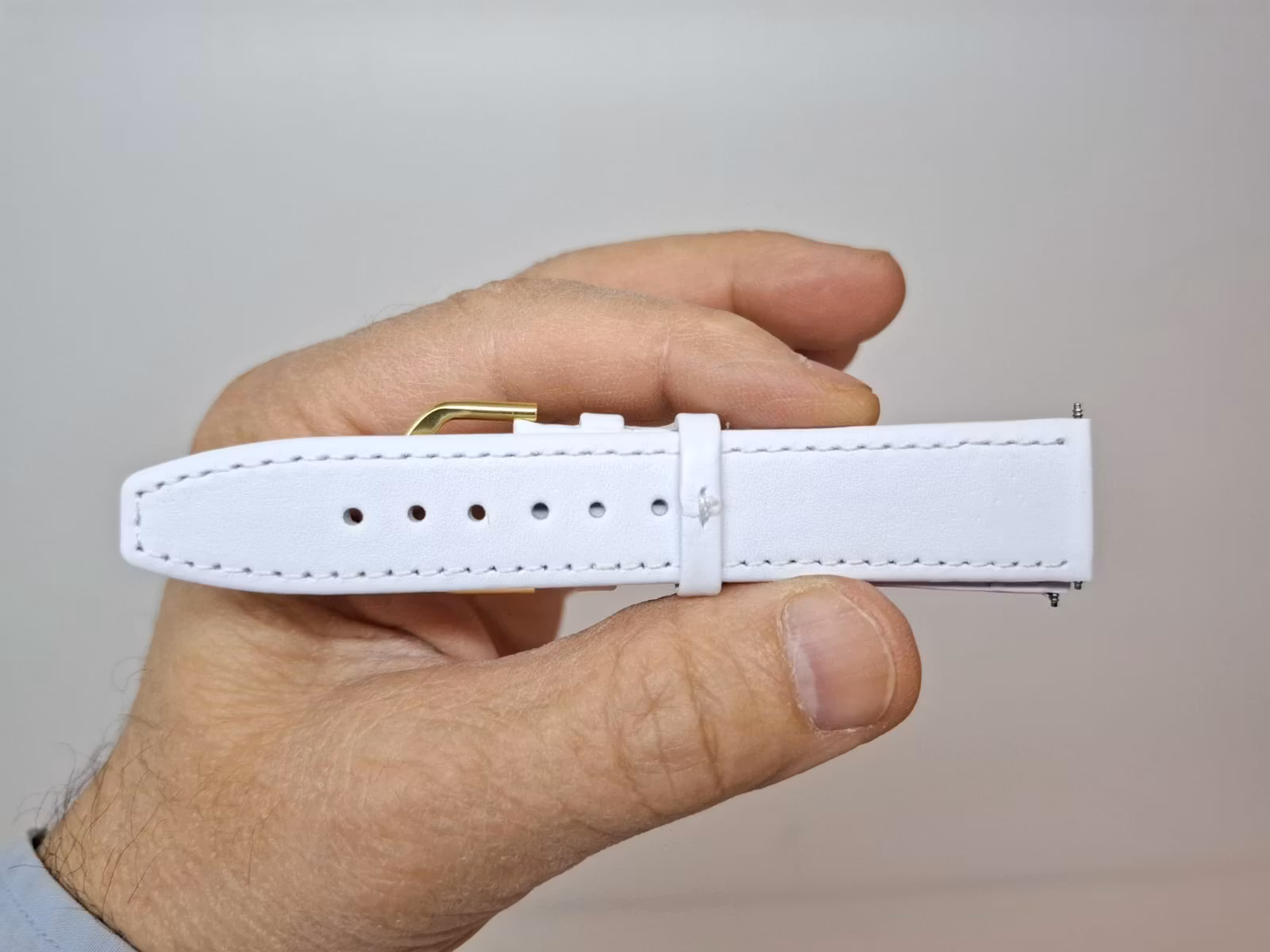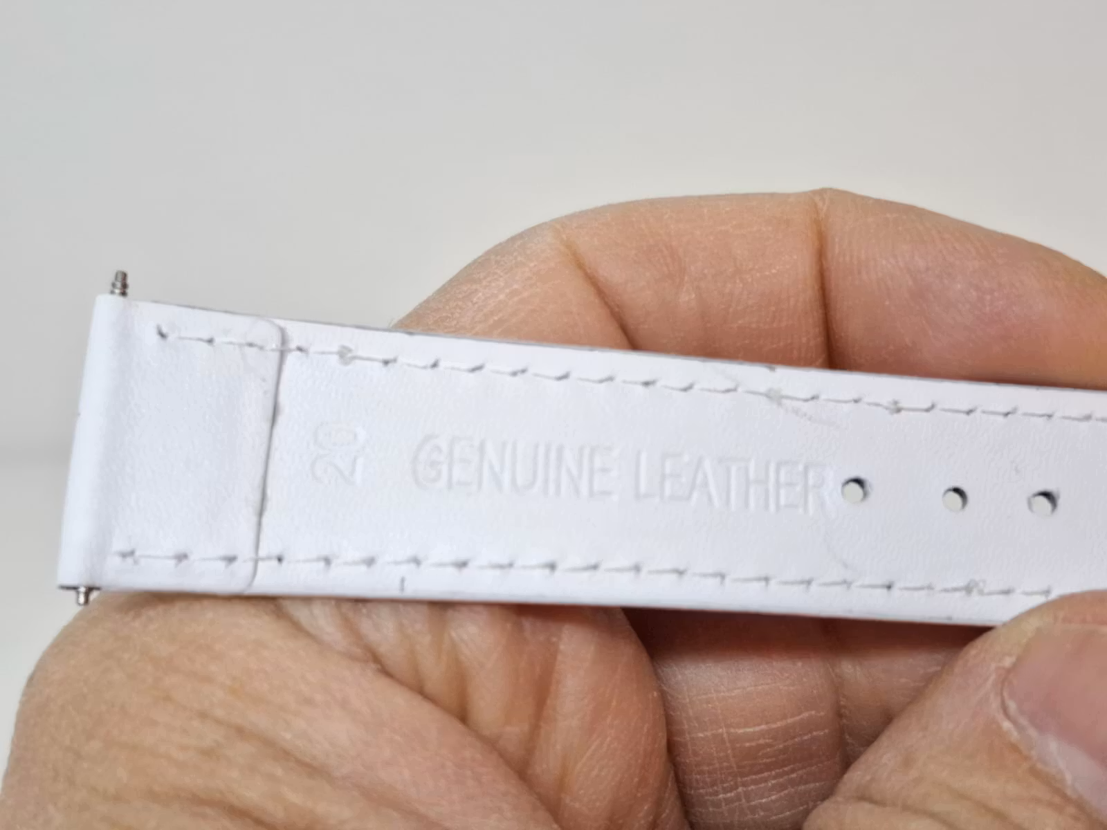Du köper ett armband som kommer i vit färg. Armbandet är tillverkade i Hong Kong, är av hög kvalité och är gjorda av äkta läder (kalvskinn). Passar både dam och herr. Två bandstift medföljer.