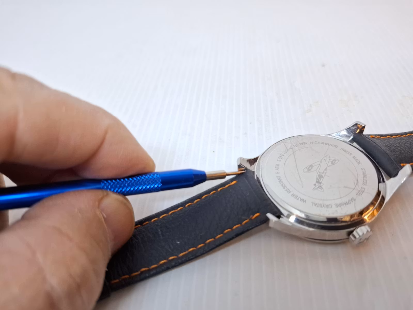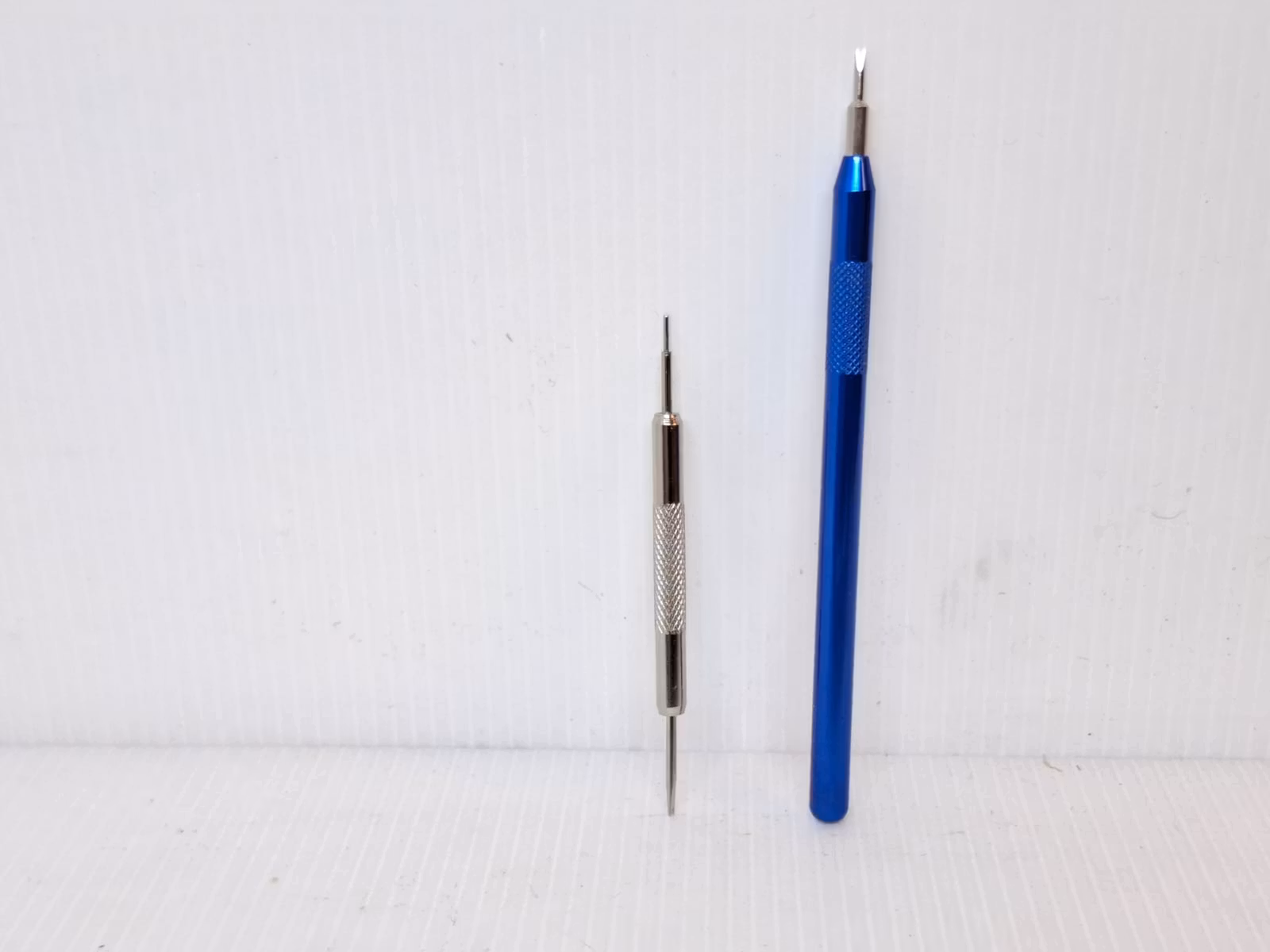 Du köper ett bandstiftsverktyg. Detta verktyg används för att byta klockarmband på din klocka snabbt och enkelt. Verktyget har en så kallad svanhals och som används för att enkelt komma åt stiften i klockarmbanden, utan att skada bandet eller klockan. Använd det bandstift som passar din klocka eller ändamål bäst. Välj det blåa eller silvriga verktyget.