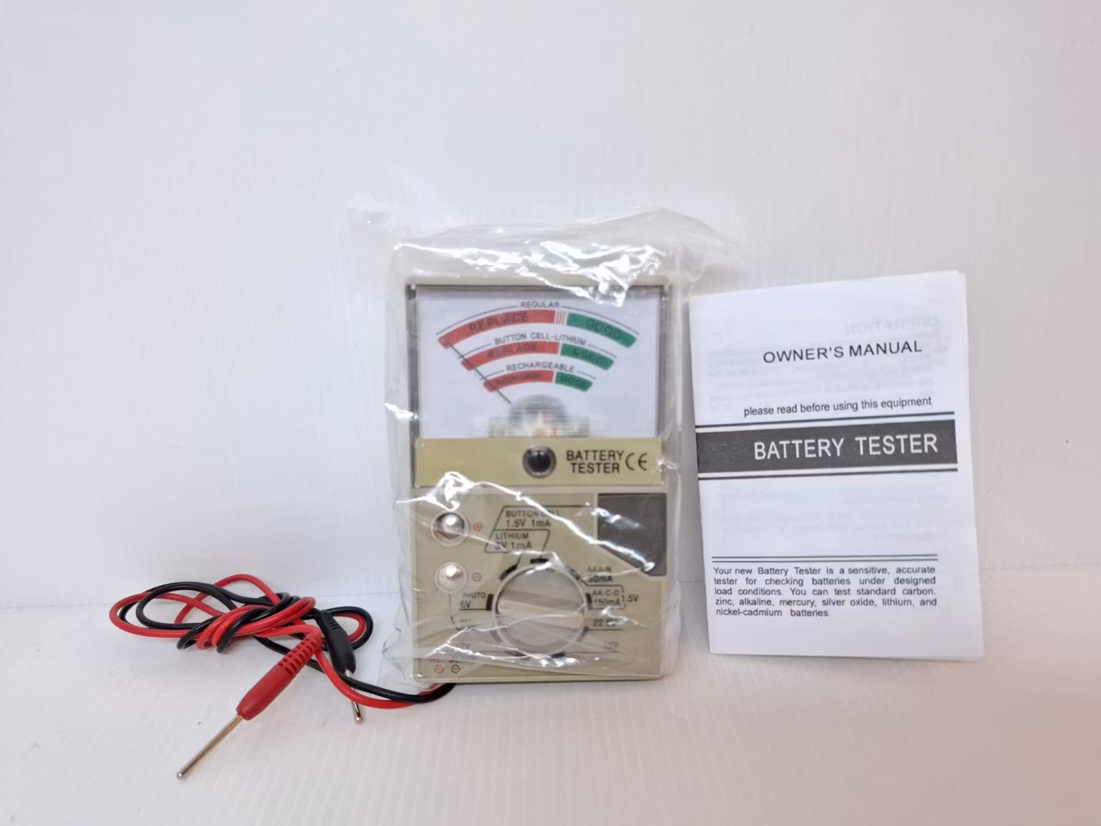 Du köper en så kallad batteritestare. Denna produkt är lämplig att använda vid exempelvis klockreparationer. Testaren används vanligtvis för att snabbt och enkelt testa batterier i klockor för att kontrollera batteriets skick. Batteritestaren är tillverkad av plastmaterial. Det medföljer en användarmanual på engelska.