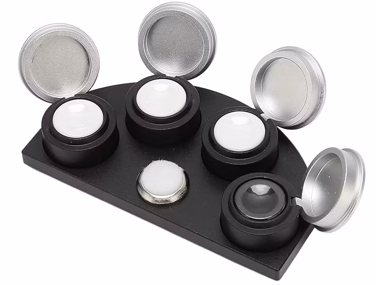 Du köper en behållare för olja, så kallad oljereservoar. Reservoaren är ett praktiskt verktyg för som man kan använda för att placera oljor (t.ex klockoljor). Reservoaren har fyra behållaren där du placerar en viss mängd olja, så du inte använder mer än nödvändigt. Behållarna är gjorda av keramik och har varsitt lock för att skydda mot damm- och smutspartiklar. I mitten av reservoaren finns det plats för en filtdyna, som har till uppgift att fånga upp extra, oanvänd olja. Produkten kommer i sin förpackning.