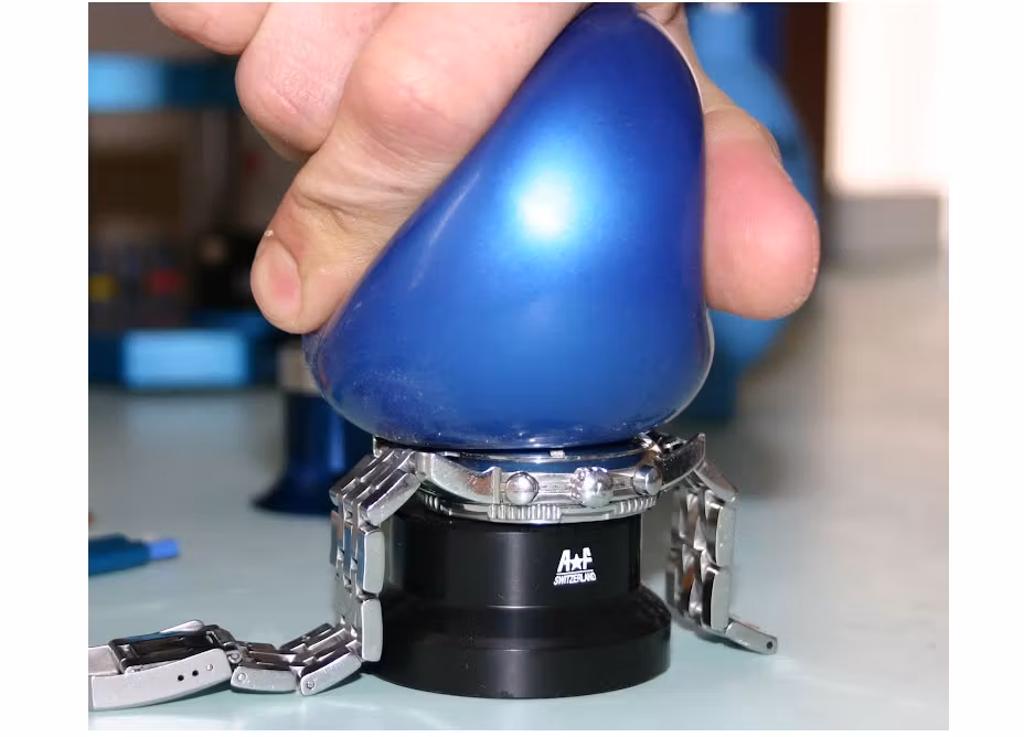 Fäst bollen fast på baksidan av klockan, tryck ner bollen och sedan gör en skruv-rörelse med handen för att få upp skruvboetten. Med bollen slipper du använda dig av vassa verktyg och minskar därmed risken för skador och repor på baksidan av klockan. Bollen kommer i olika färger och skickas i slumpmässig färg till kunden.