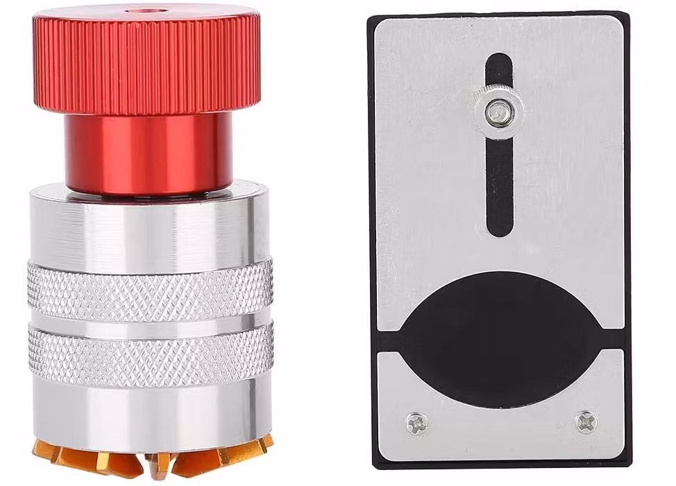 Du köper ett praktiskt verktyg för klockor som används som boettöppnare. Den kallas ibland för JAXA STYLE eller på engelska Claw Case Opener. Använd dig av skruven / snurrhjulet för att öppna klorna. Placera sedan verktyget över glaset och skruva sedan ihop klorna så att de greppar stadigt om glaset. Därefter drar du sedan upp och glaset avlägsnas från klockan. Notera att glaset skall vara tillverkad av akryl för att verktyget inte skall skada/förstöra glaset.