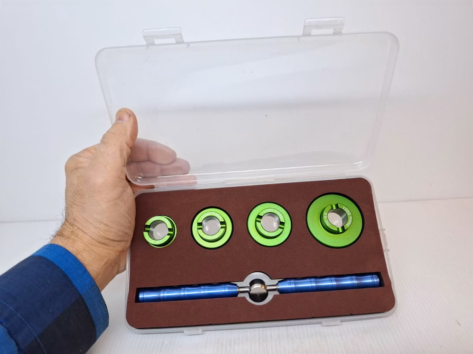 Du köper en Boettöppnare / klockhusöppnare som är ett praktiskt verktyg för att öppna upp boetten (locket) på baksidan av din klocka. Det ingår fyra stycken olika storlekar där varje storlek har sex piggar på undersidan som placeras på boetten (se bilder). Denna boettöppnare passar bland annat Omega Seamaster (både dam och herr). Produkten kommer i sin förpackning.