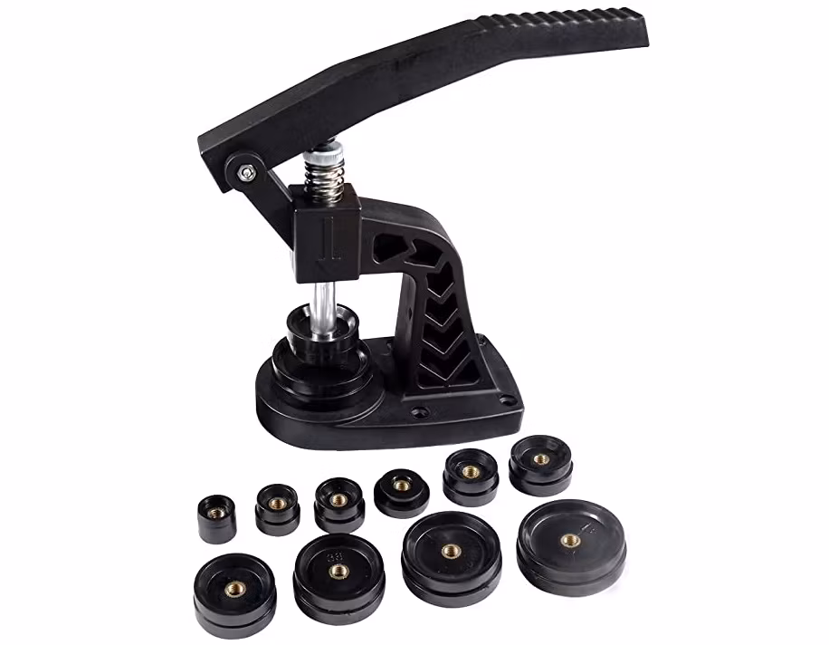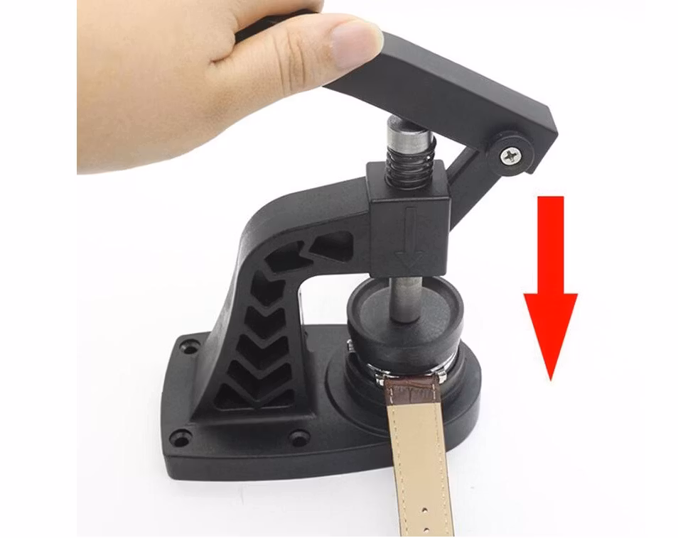 Du köper en boettpress som har 12 stycken medföljande pressplattor. Boettpressen är ett praktiskt verktyg för att enkelt och säkert pressa tillbaka boetten på baksidan av klockan, utan att glaset på framsidan av klockan tar skada. Pressplattorna är gjorda av nylon för att undvika risken för slitage och skador på klockan. Boettpressen är gjord av hårdplast.