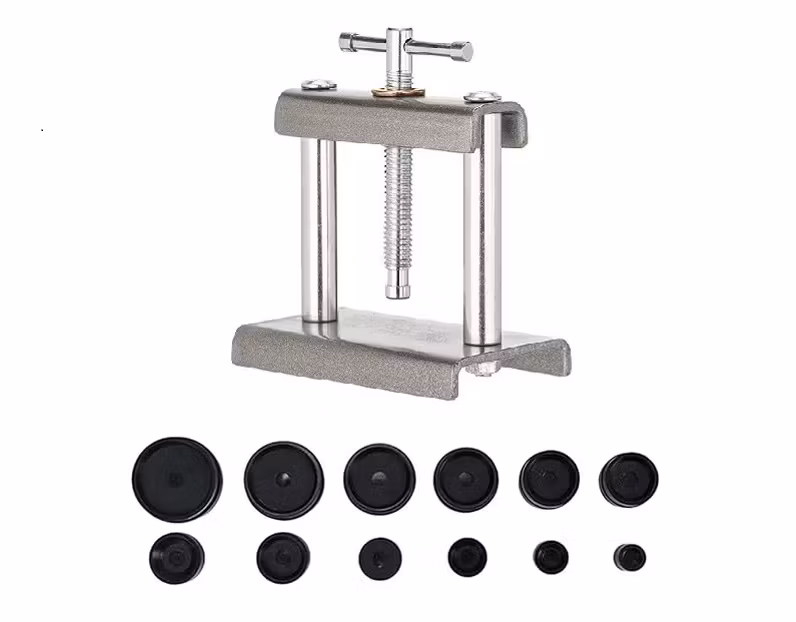 Du köper en boettpress som är tillverkad i stål. Den är enkel att använda och ger dig också kontroll över hur mycket du behöver vrida på vridspaken för att sätta tillbaka boetten på baksidan av din klocka. Boettpressen är bäst anpassad för klockor som har urtavlor med diameter mellan 17-46 mm. Boettpressen väger ca 300 gram.