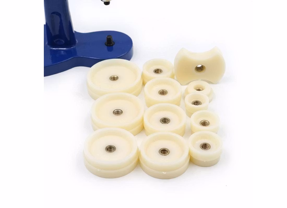Du köper en Boett press (ett verktyg för klocka och urmakeri) samt press plattor. En kraftig Boettpress används för enkel fastsättning av sprätt/press på baksidor av klockor. På det sättet skadar man inte glaset. Pressplattorna är av nylon, för skonsam hantering av glaset. Produkten väger ca 350 gram.