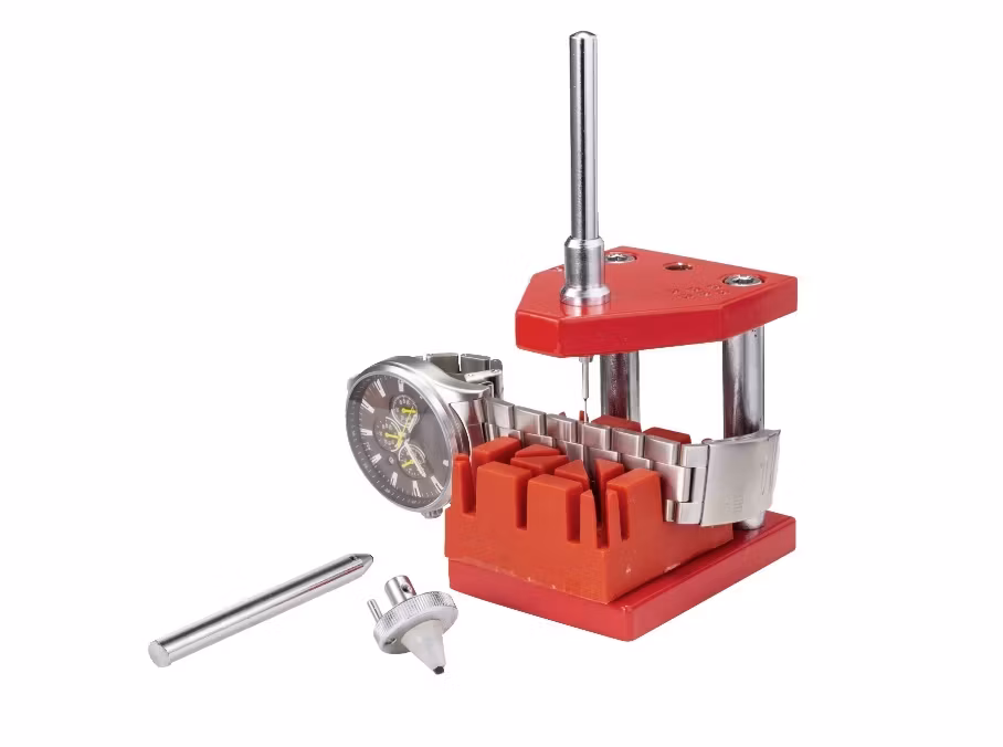 Du köper en länkborttagare som är ett verktyg för klocka och urmakeri. Bestäm dina egna storlek på armbanden med hjälp av detta lättanvända verktyg. Det här multifunktionsverktyget gör det enkelt att ta bort länkar (förkorta) och lägga till länkar (förlänga) till ditt klockarmband. Placera din klocka på det kvadratiska blocket, och sedan placerar du dessa i länkborttagaren. Därefter använder du dig av spaken (med passande stift) och trycker ner den för att få ut bandstiften från armbandet i klockan.