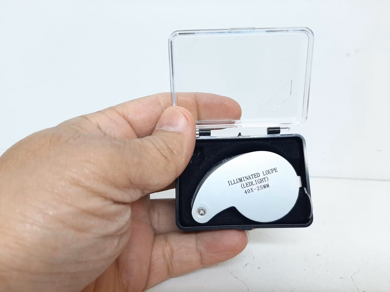 Luppen är praktiskt att använda till att se små saker betydligt större, bättre och skarpare. Använd eller placera över objektet du jobbar på, exempelvis reparation av en klocka / urmakeri eller smycken.