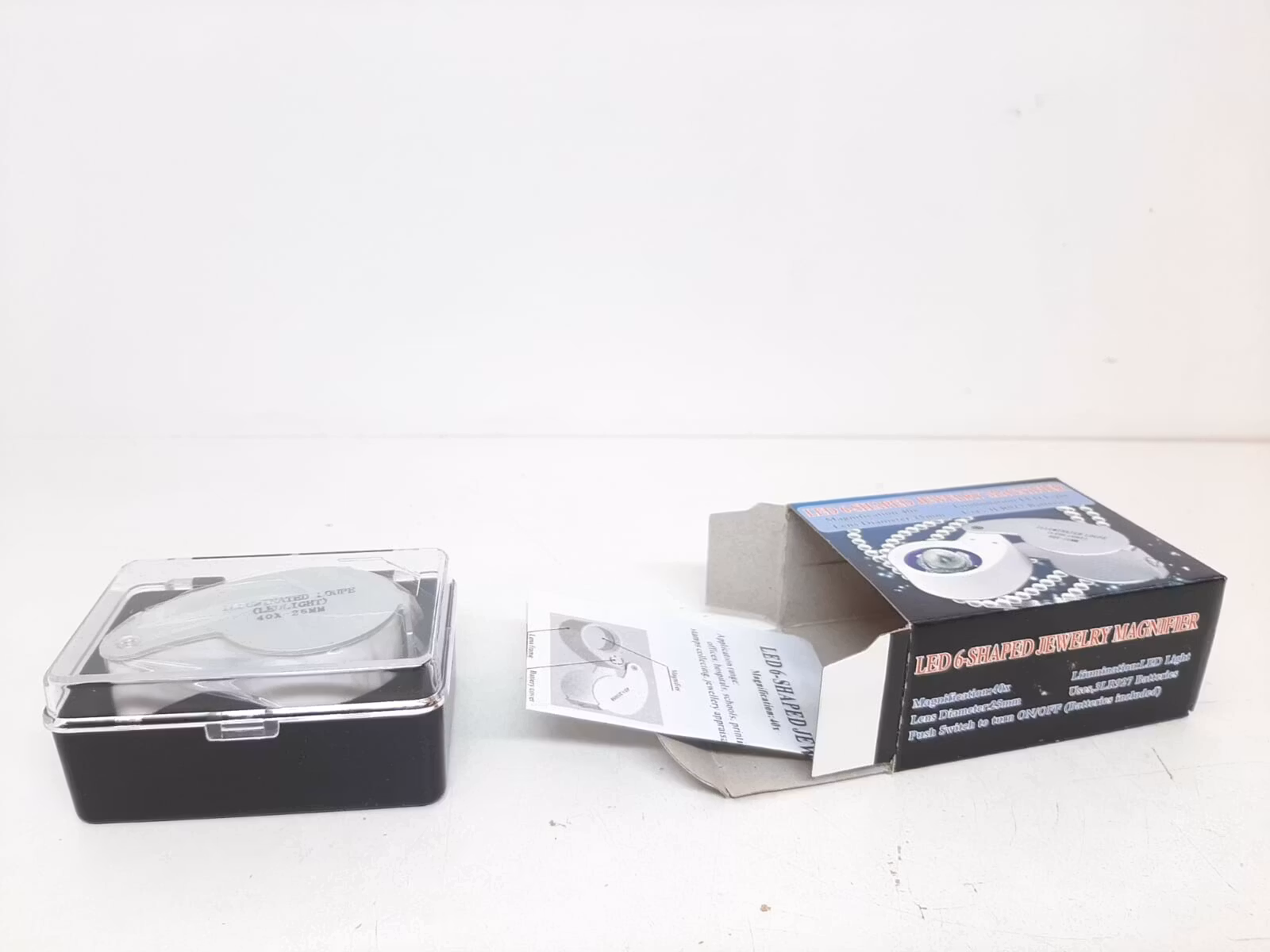 Du köper en lupp som är ett passande verktyg för klocka och urmakeri. Luppen har en förstorningsstyrka till 40 gånger (40x). Vidare så har luppen en inbyggd LED-lampa (testas innan den skickas). Det medföljer en liten metallnyckel som används vid batteribyte.
