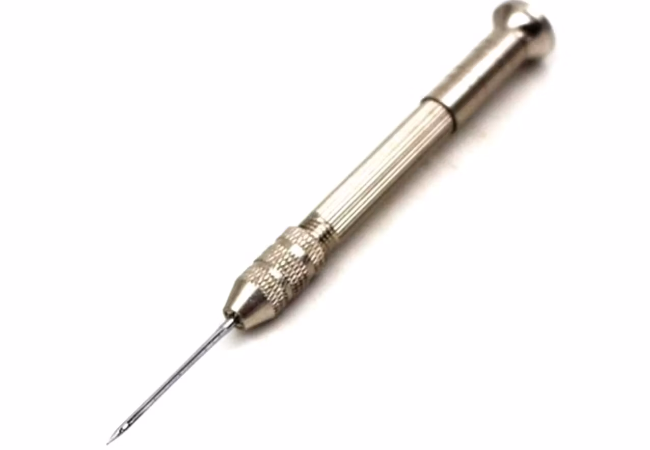 Du köper ett verktyg (pin vice) som är praktisk att använda vid exempelvis reparation av klocka och urverk. Använd detta verktyg för att bland annat göra hål, pilla bort, trycka och mycket mer. Verktyget har två små cylindrar som finns inne i själva verktyget. Varje cylinder har två storlekar ute på varje ände. Använd den ände där din nål passar och skruva sedan ihop verktyget med cylindern inne i verktyget. Nål ingår inte.