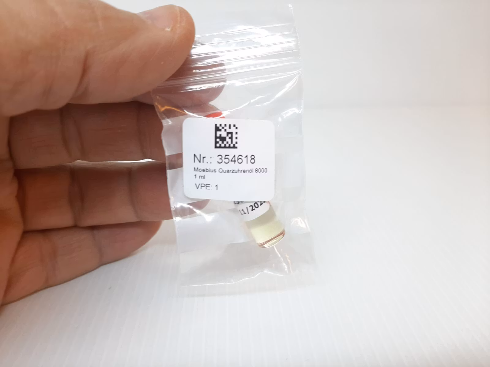 Du köper en behållare som innehåller 1 ml olja för klocka.