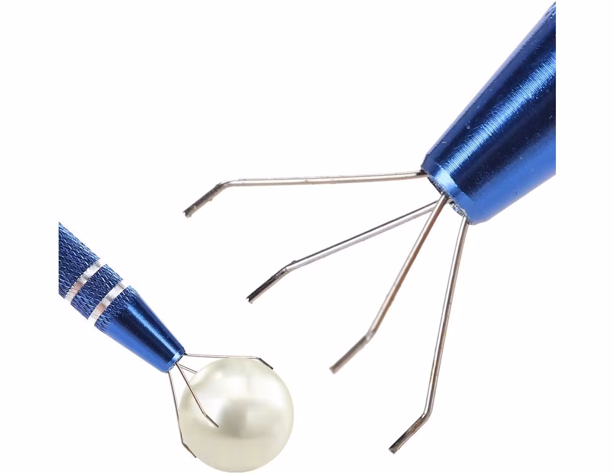 Du köper ett verktyg som används för att greppa tag om små föremål, exempelvis små klockdelar, diamanter, smycken, skruvar, med mera. Verktyget, som också kan kallas för diamanthållare, plockningsverktyg och pincett, har fyra klor som kommer fram när man trycker på den svarta knappen längst back på verktyget. Dessa klor är designade att kunna greppa tag om olika föremål, oavsett skepnad (runda, rektangulära, oregelbundna). Notera att andra föremål på bilderna är endast för visningssyfte och ingår inte i köpet.