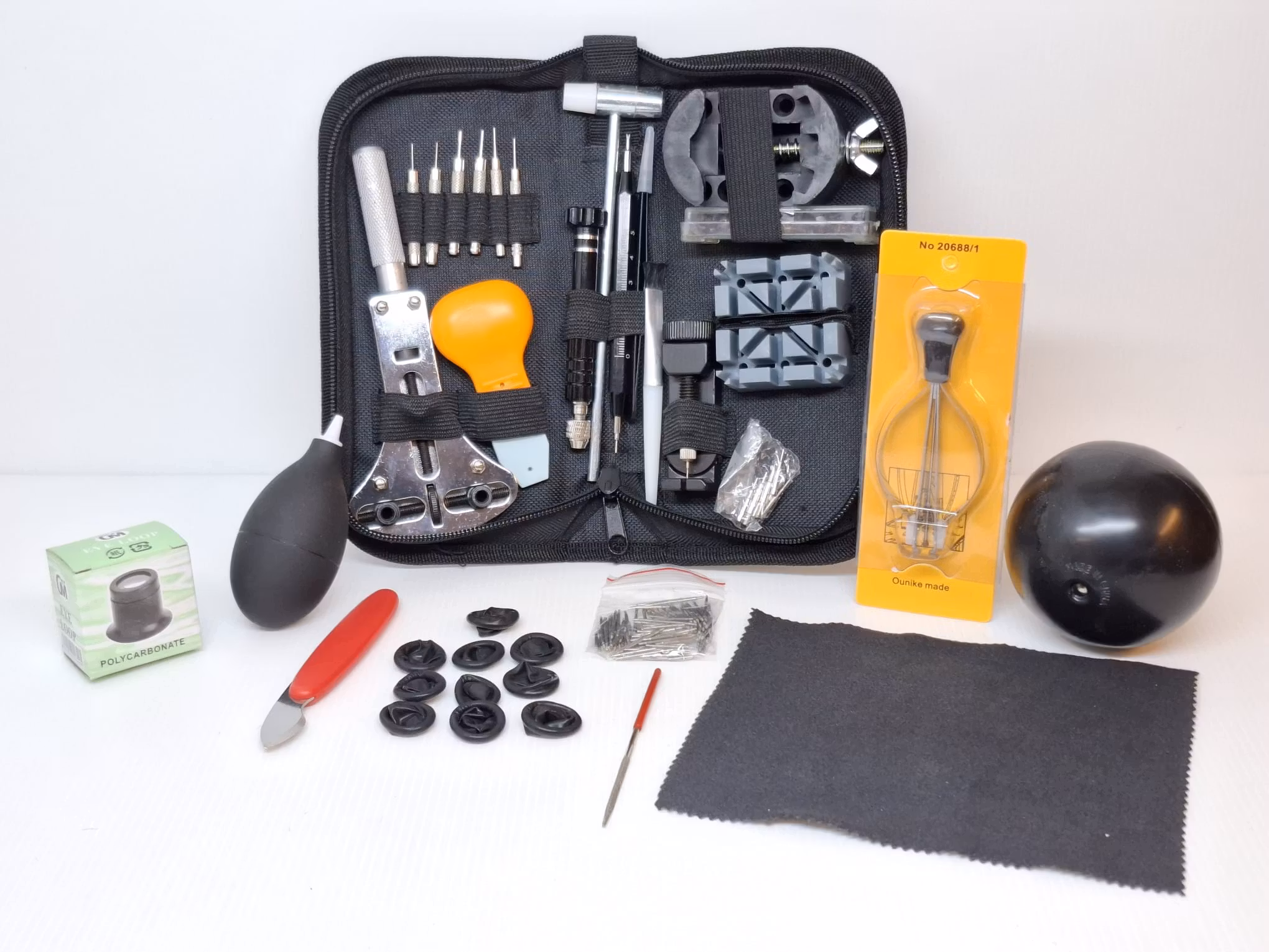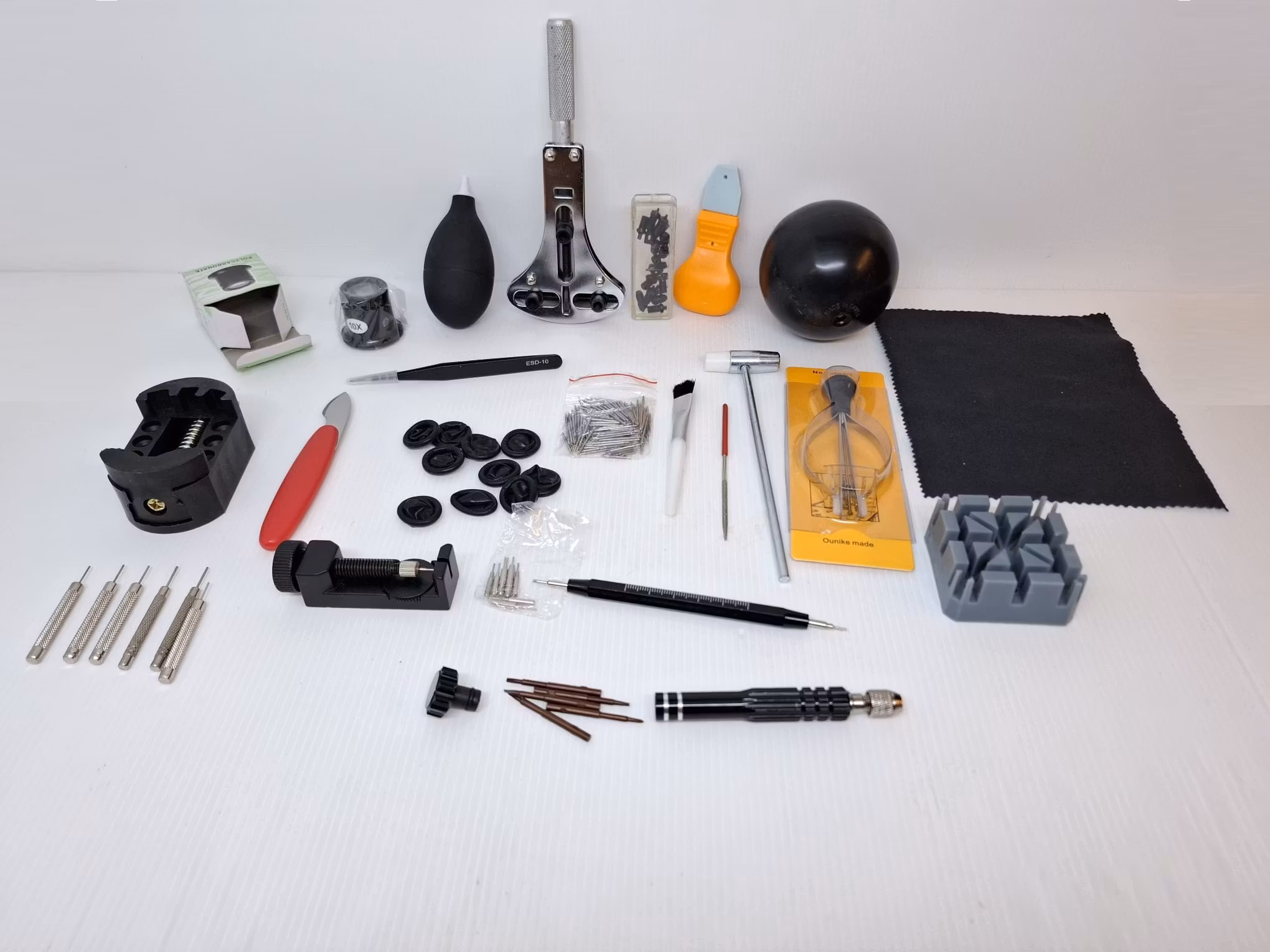 Du köper en verktygssats som innehåller totalt 20 olika praktiska verktyg för reparationer och underhåll av klocka och urmakeri. Verktygen kommer i en väska med dragkedja. Du köper följande verktyg: