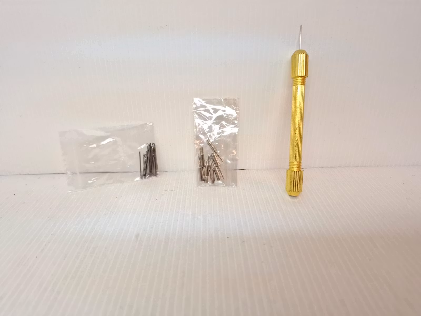 1) Flera nålar. Dessa används för att kunna trycka ut bandstiften i klockarmbandet.