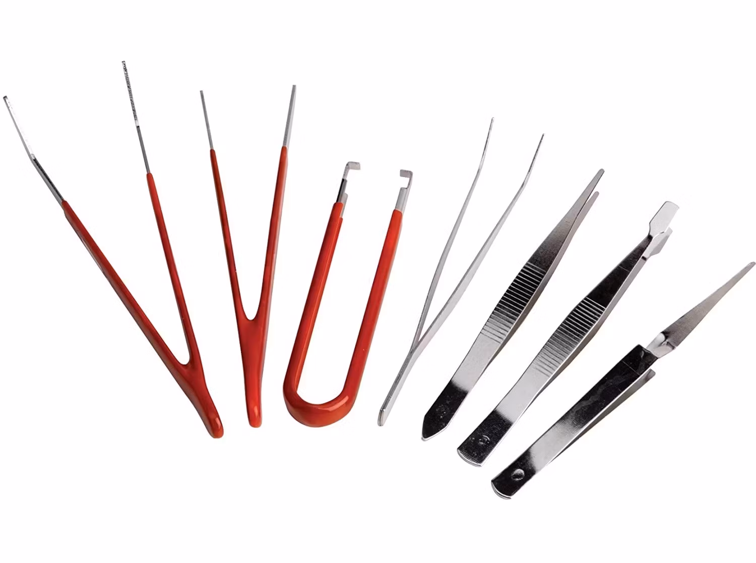 Du köper ett set med 7 stycken olika pincetter som är praktiska att använda vid t.ex plockning, grepp och hantering av mycket små föremål, med mera. Verktygen passar väl vid hantering av klockor och klockans reservdelar. Materialet på dessa pincetter är krombehandlat kolstål för extra hållbarhet.
