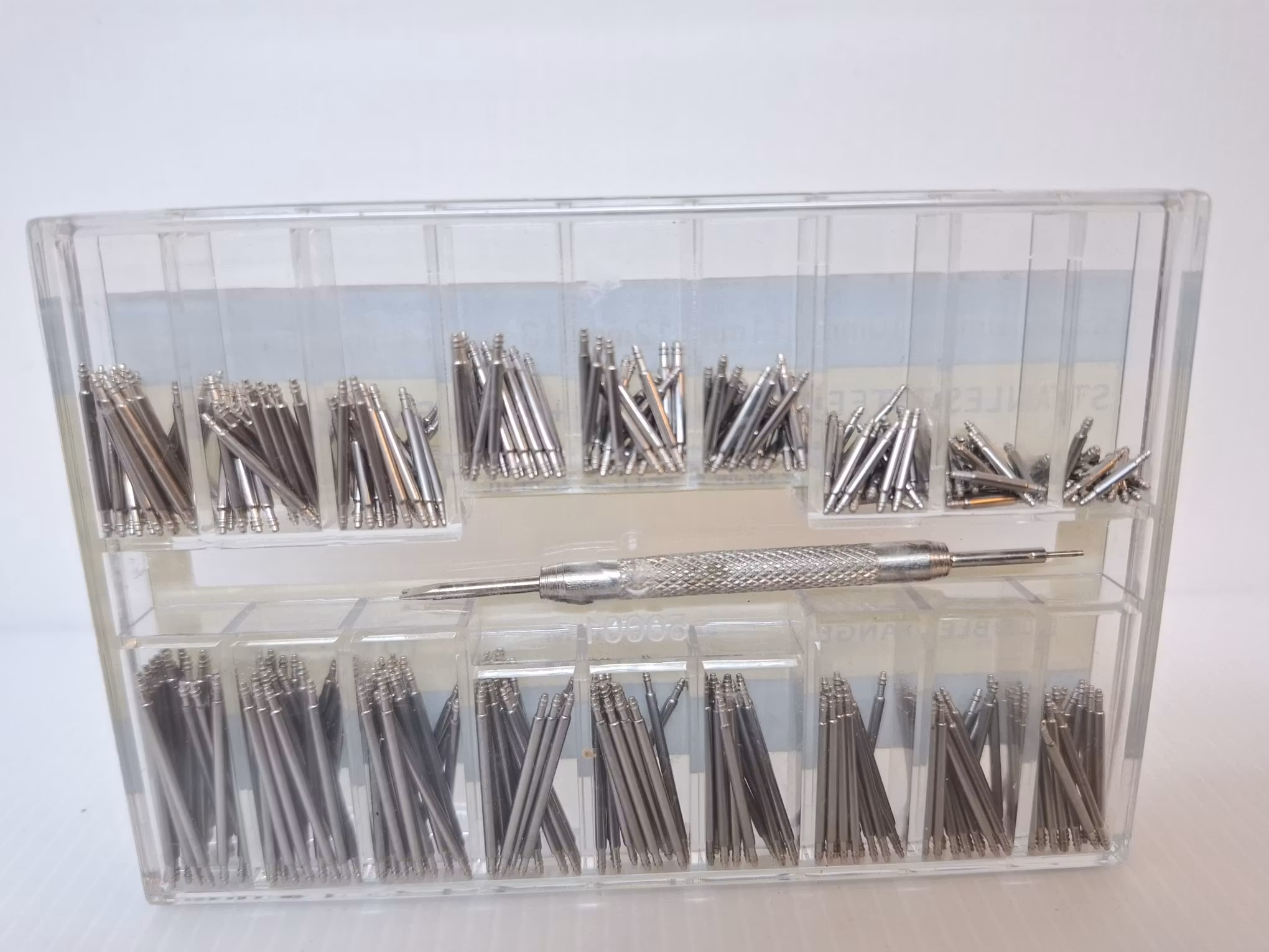 Du köper en låda/ett set som innehåller ca 360 stycken med bandstift / bandsprint samt ett bandstiftsverktyg. Detta verktyg används för att byta klockarmband på din klocka snabbt och enkelt och är ett praktiskt komplement till bandstiften.