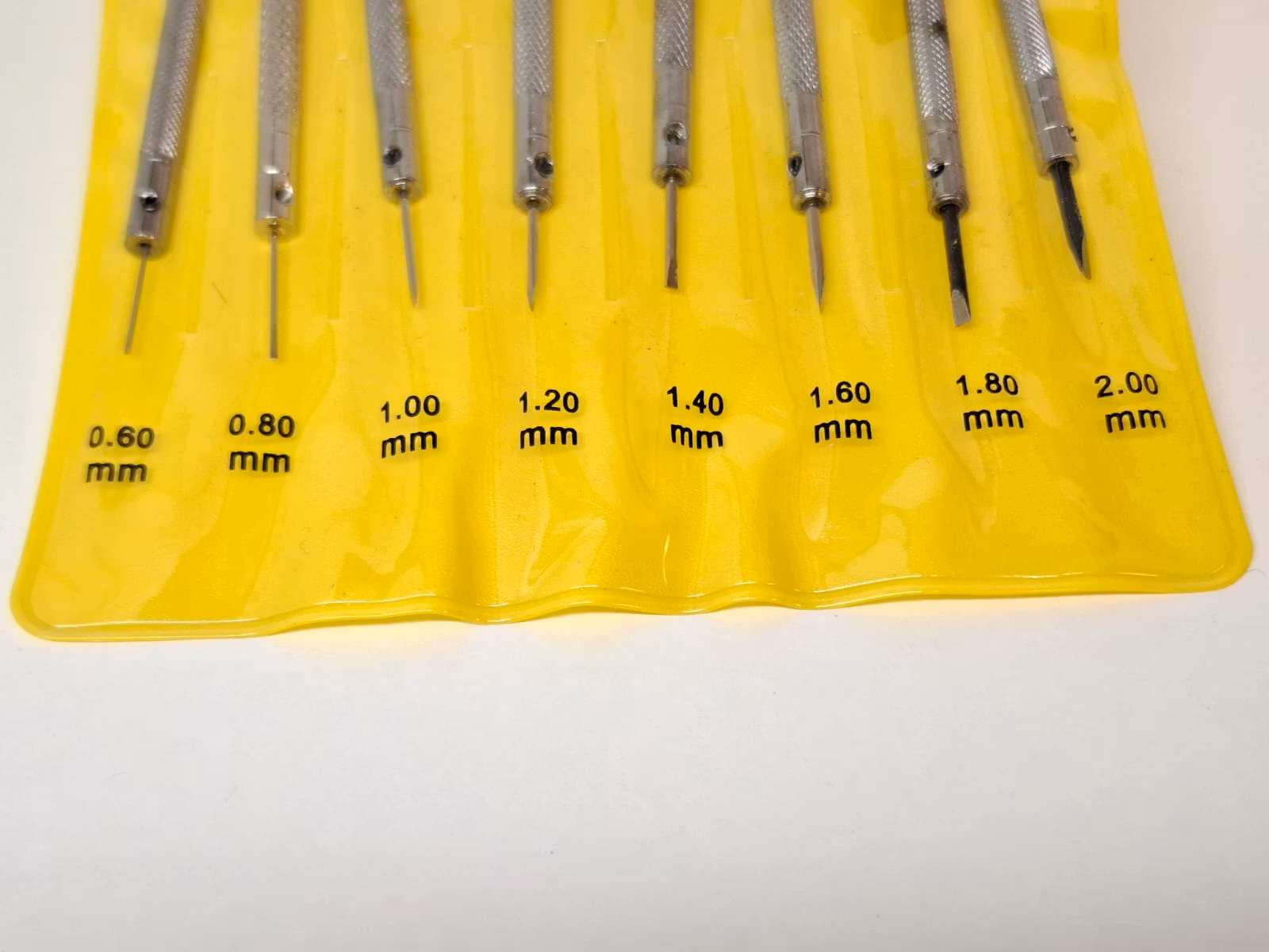 Måtten / tjockleken på skruvmejslarna är: