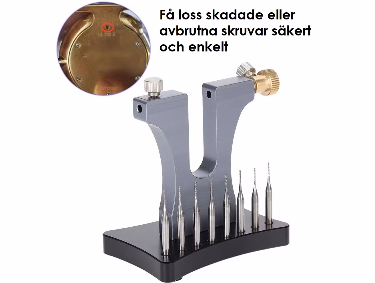 - Kan ta bort trasiga skruvar inifrån klockor och andra urverks-delar.