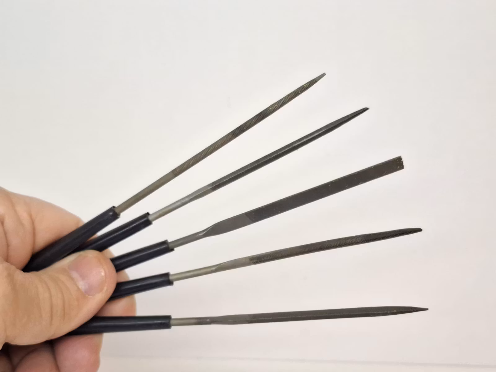 Verktyg: 5 stycken precisionsfilar (fil) 69 kr FINNS I LAGER Lägg i korgen Artikelnummer: 7770 Information Du köper ett set som innehåller 5 stycken precisionsfilar i olika former; rund, platt, spetsig, etc.Material: Metall
